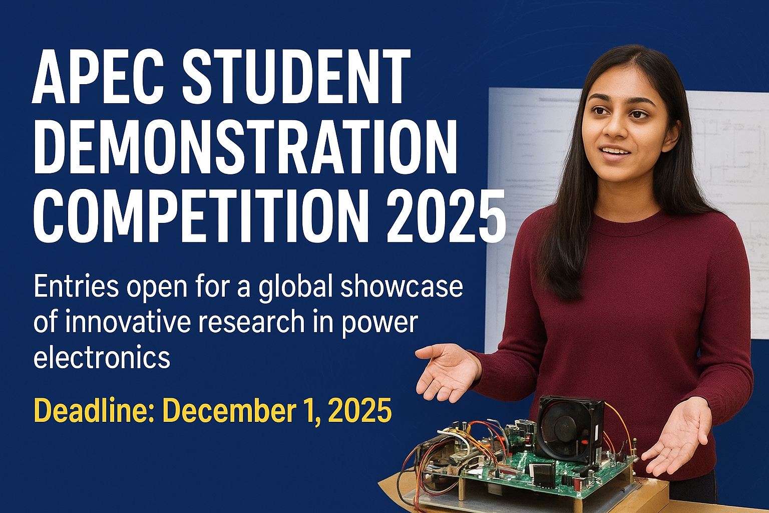 Competition Entries Open for the APEC Student Demonstration Competition 2025 Admin, November 3, 2025November 3, 2025 Application Deadline: December 1, 2025 The Applied Power Electronics Conference (APEC) has officially opened entries for its inaugural Student… Continue Reading