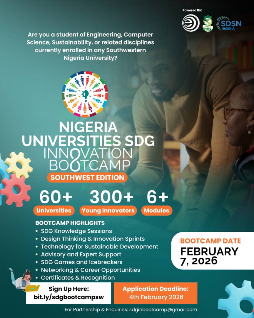 Course and Trainings Apply Now for the Nigeria Universities SDG Innovation Bootcamp (South-West Edition) 2026 Admin, February 1, 2026February 1, 2026 Application Deadline: February 4, 2026 Applications are now open for the Nigeria Universities SDG Innovation Bootcamp… Continue Reading