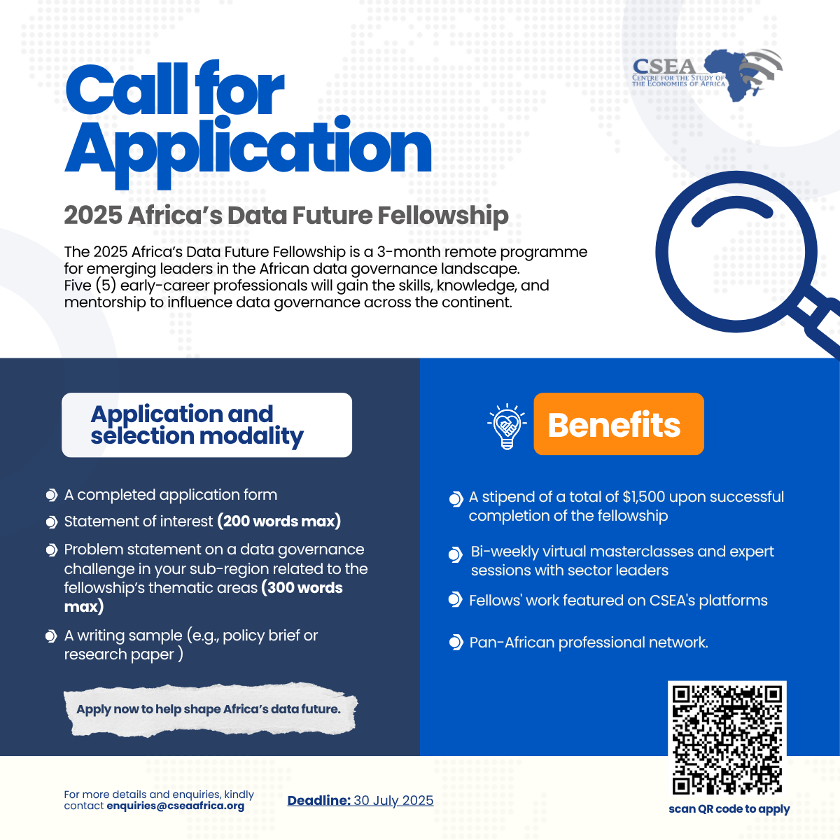 Fellowships & Scholarship opportunities Apply Now for 2025 Africa’s Data Future Fellowship Admin, July 10, 2025July 10, 2025 The 2025 Africa’s Data Future Fellowship is a dynamic 3-month remote capacity-building programme for emerging… Continue Reading