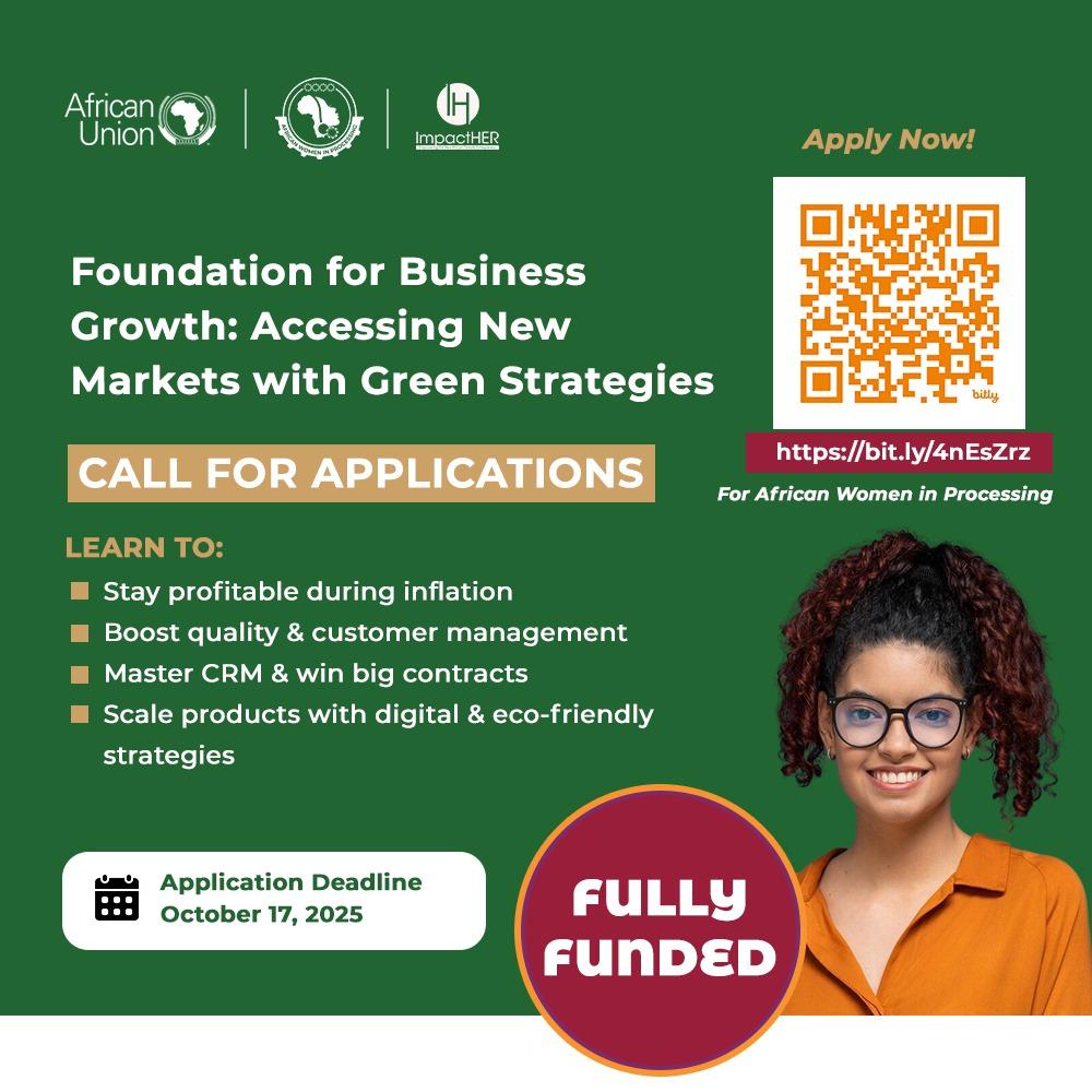 Fellowships & Scholarship opportunities ImpactHER Foundation Offers Fully Funded Business Growth Training for Female Entrepreneurs Across Africa – Apply Now Admin, October 10, 2025October 10, 2025 Application Deadline: October 17, 2025 The ImpactHER Foundation is inviting African female entrepreneurs in the processing sector… Continue Reading